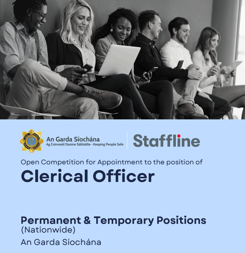 An Garda Síochána have launched a nationwide recruitment campaign for Clerical Officers. This is a nationwide competition for permanent and temporary positions. The deadline for applications is Weds 29th October @ 3pm.
